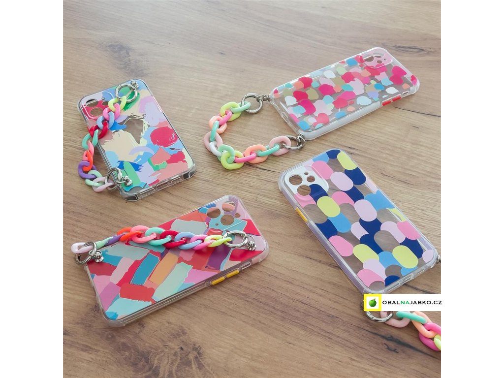 Barevný obal Chain Case III na iPhone 13 mini s praktickým plastovým řetězem, díky kterému můžete telefon držet a nemusíte se bát, že by Vám vyklouzl z ruky. Je vyrobený z TPU materiálu, který chrání telefon před pády, poškrábáním a poskytuje mu dokonalou ochranu. Obal má vyvýšené okraje jak v přední části, tak také v zadní části okolo čoček, čímž předchází možnému poškrábání při položení telefonu například na stůl. Tento obal je dokonalý doplněk pro každého, kdo chce dodat svému telefonu jedinečný vzhled plný barev. Obal dokonale přilne k telefonu, takže se nemusíte obávat, že by se pod něj dostaly nečistoty.